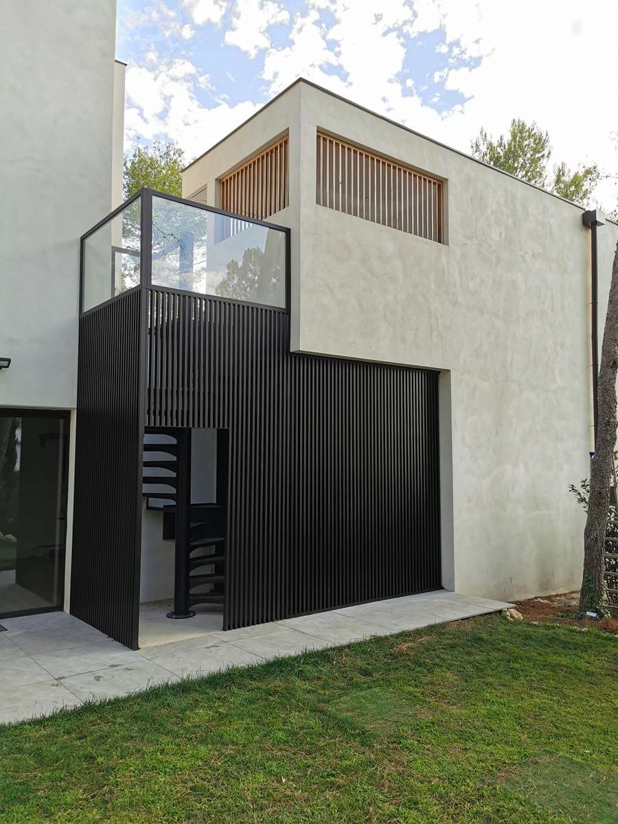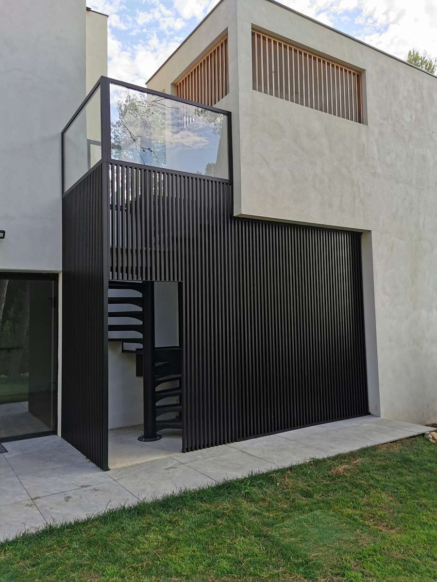 - Escalier colimaçon avec claustra aluminium, Montferrier sur Lez, Hérault 34, villa architecte