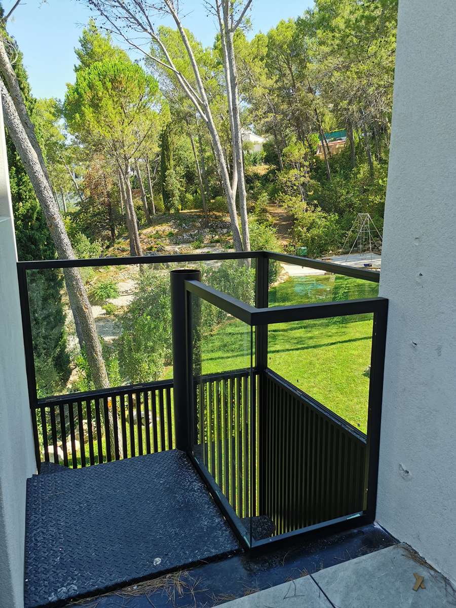 Ouvrage entièrement sur mesure, avec un garde corps sur la partie haute vitré.