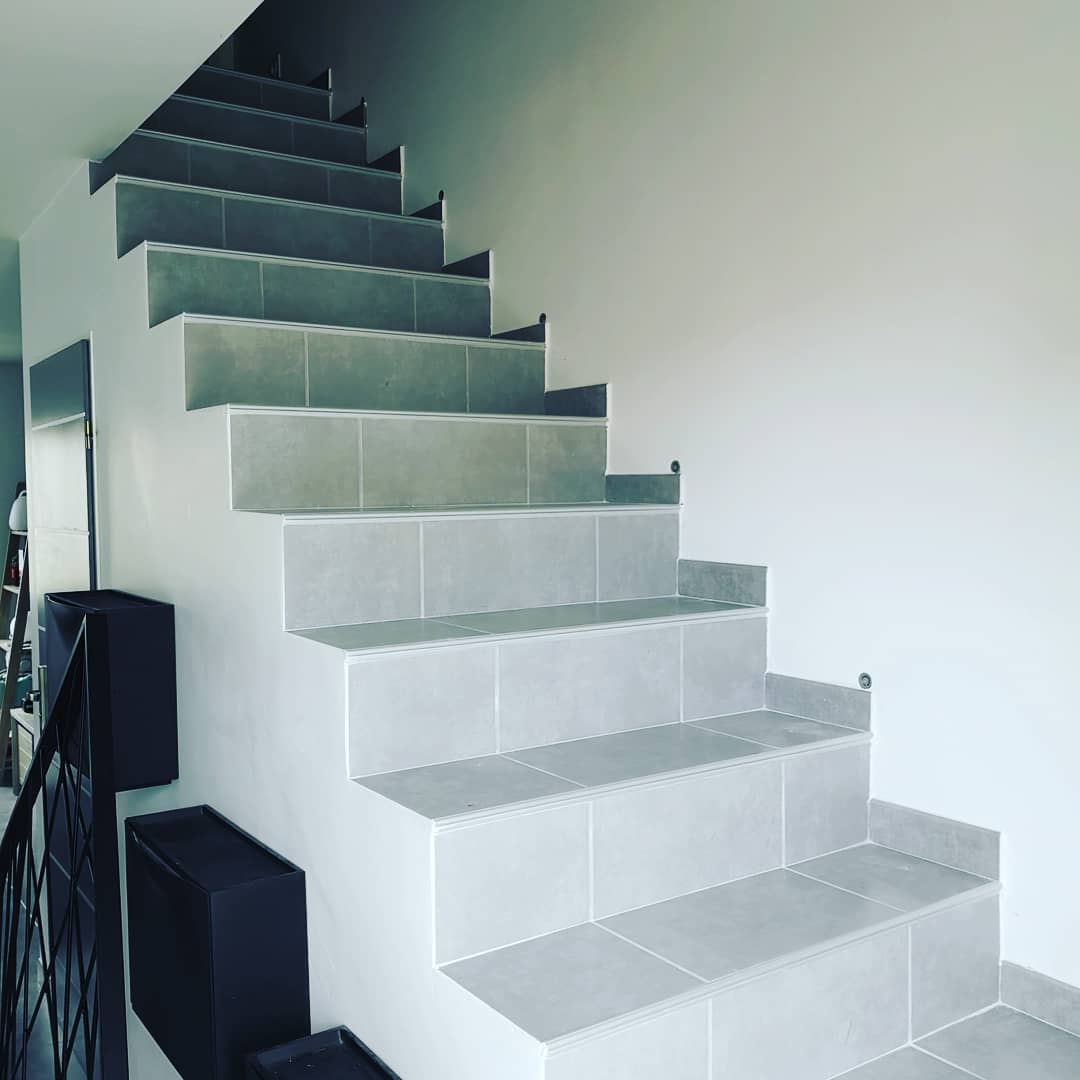 Motif résille, assurant une belle jonction entre l’escalier et l’ambiance de la pièce à vivre.
