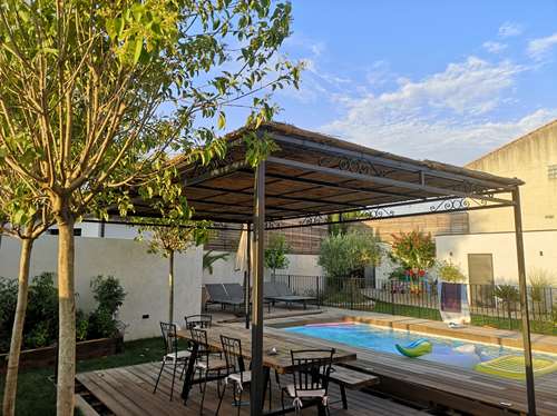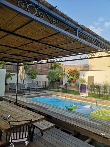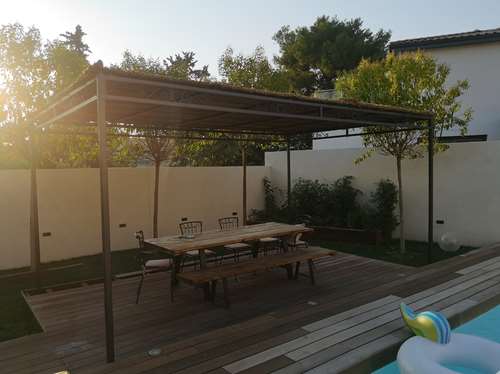 Création d’une pergola provençale aux abords d’une magnifique piscine.