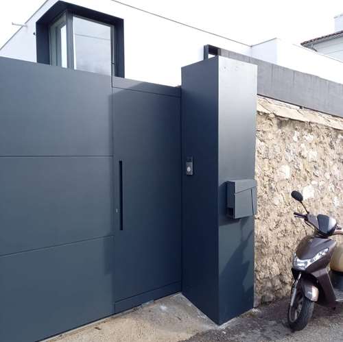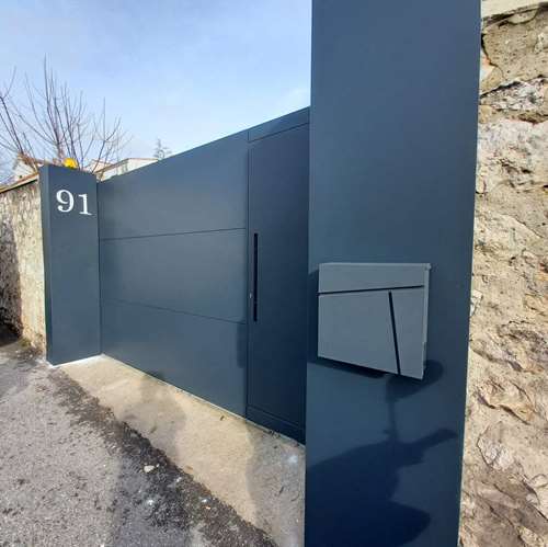 Création d’un portail coulissant, avec un portillon intégré.