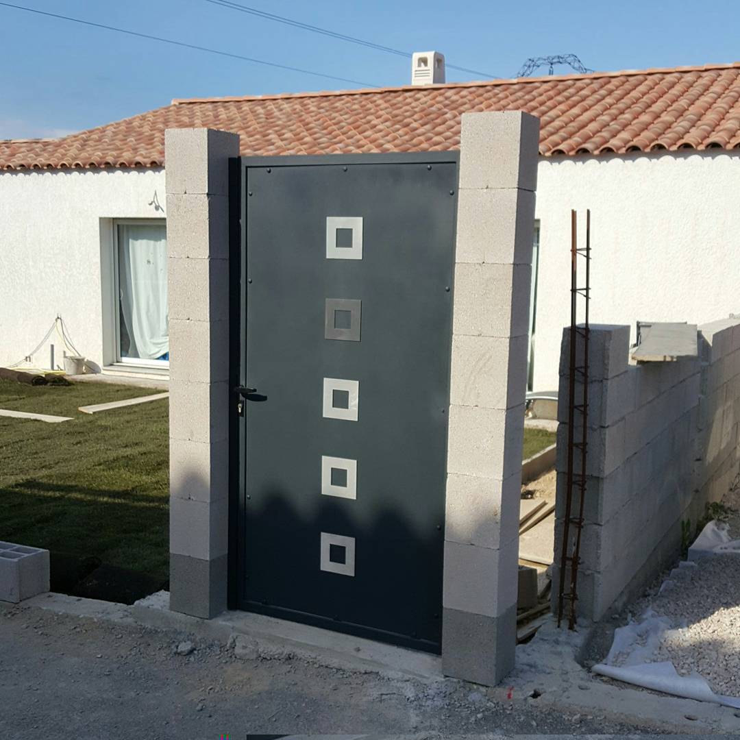 Aspect moderne avec des décorations en INOX brossés fixées sur l’habillage en tôle.