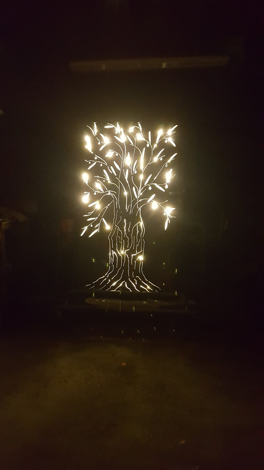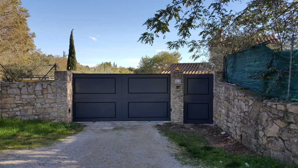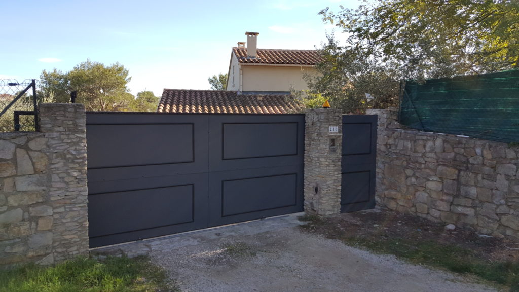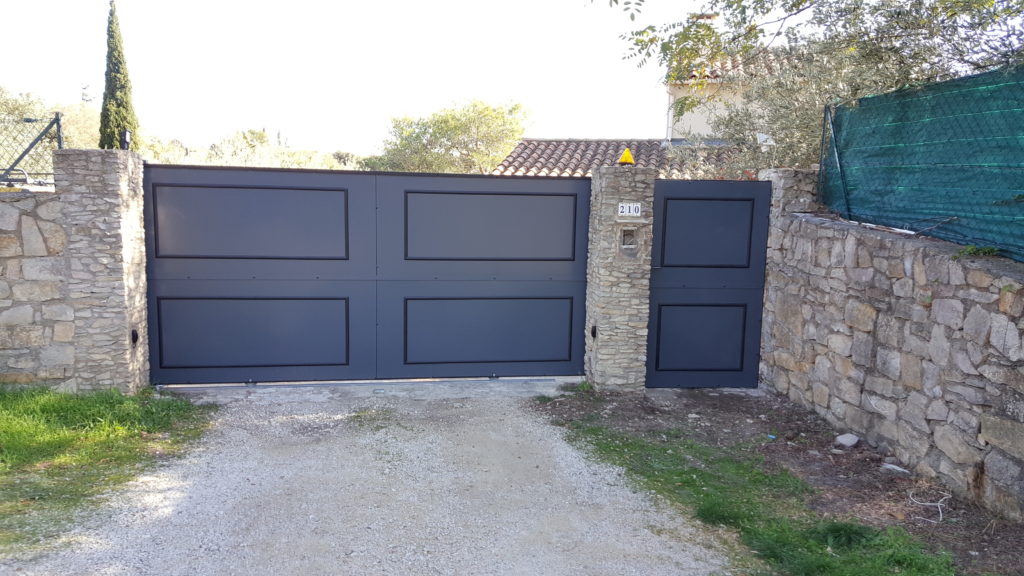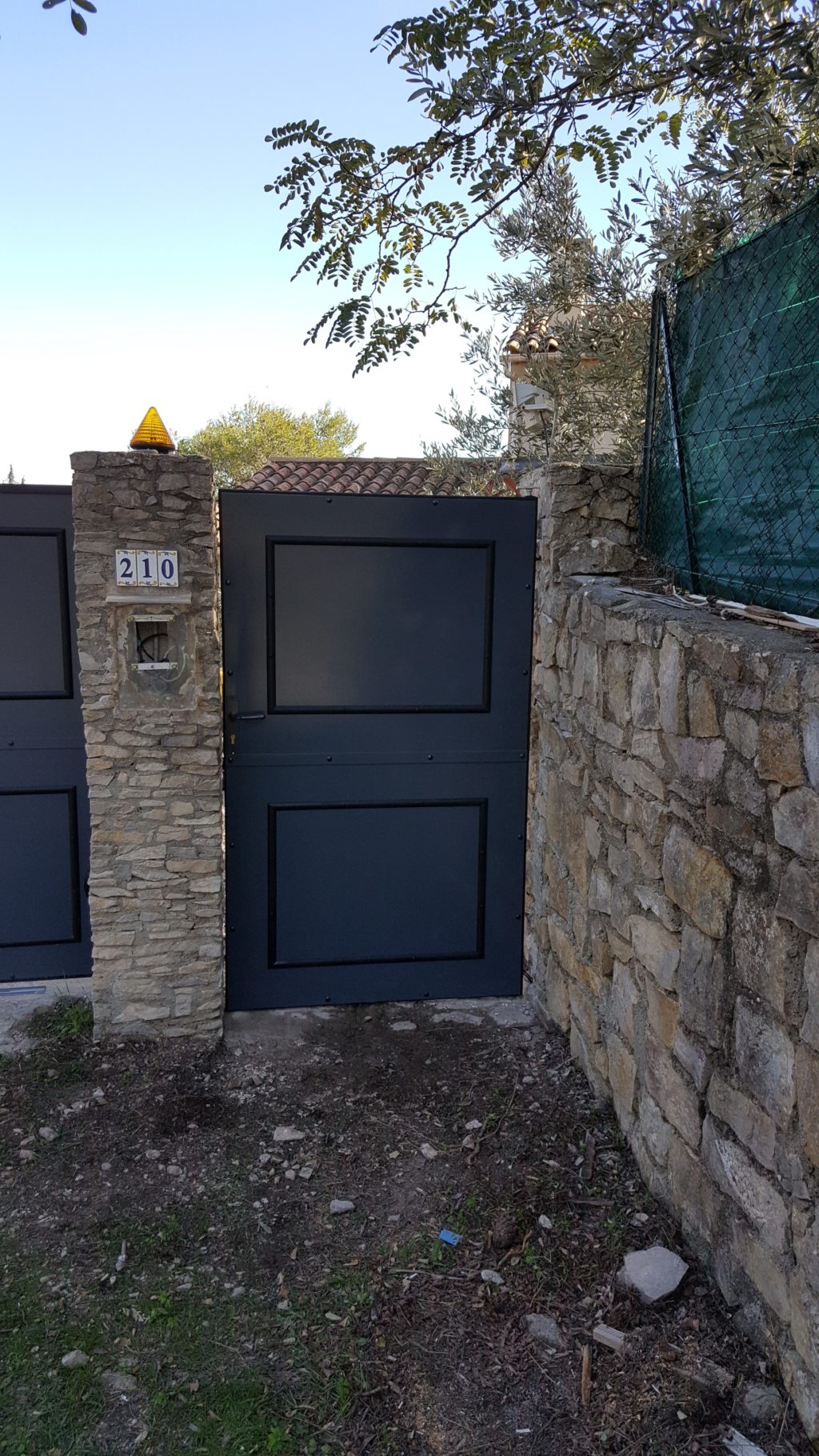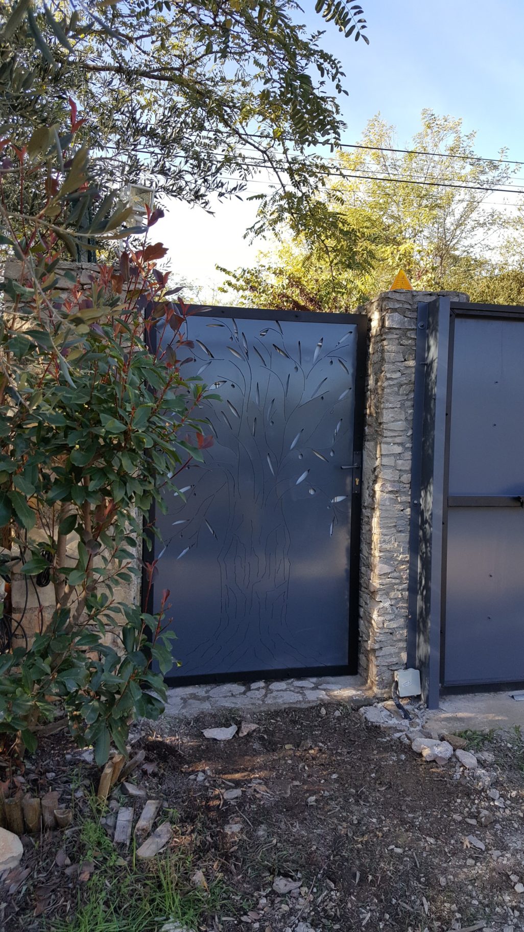 Portillon ACIER – Nîmes (Gard 30) 21 décembre 2016 Réalisation d’un portillon en ACIER dans la prolongation du portail coulissant. Habillage en deux peaux de 2mm d’épaisseur. Création d’un motif rétro-éclairé sur le verso du portillon.