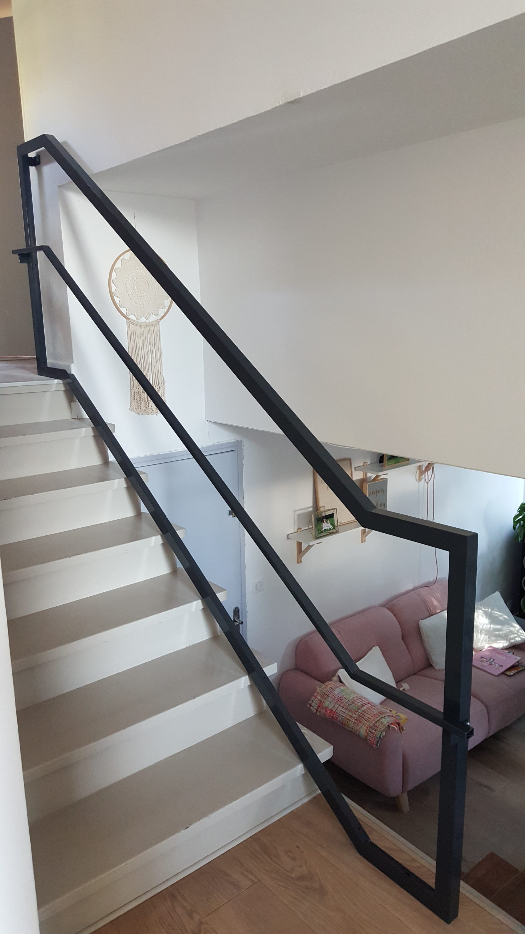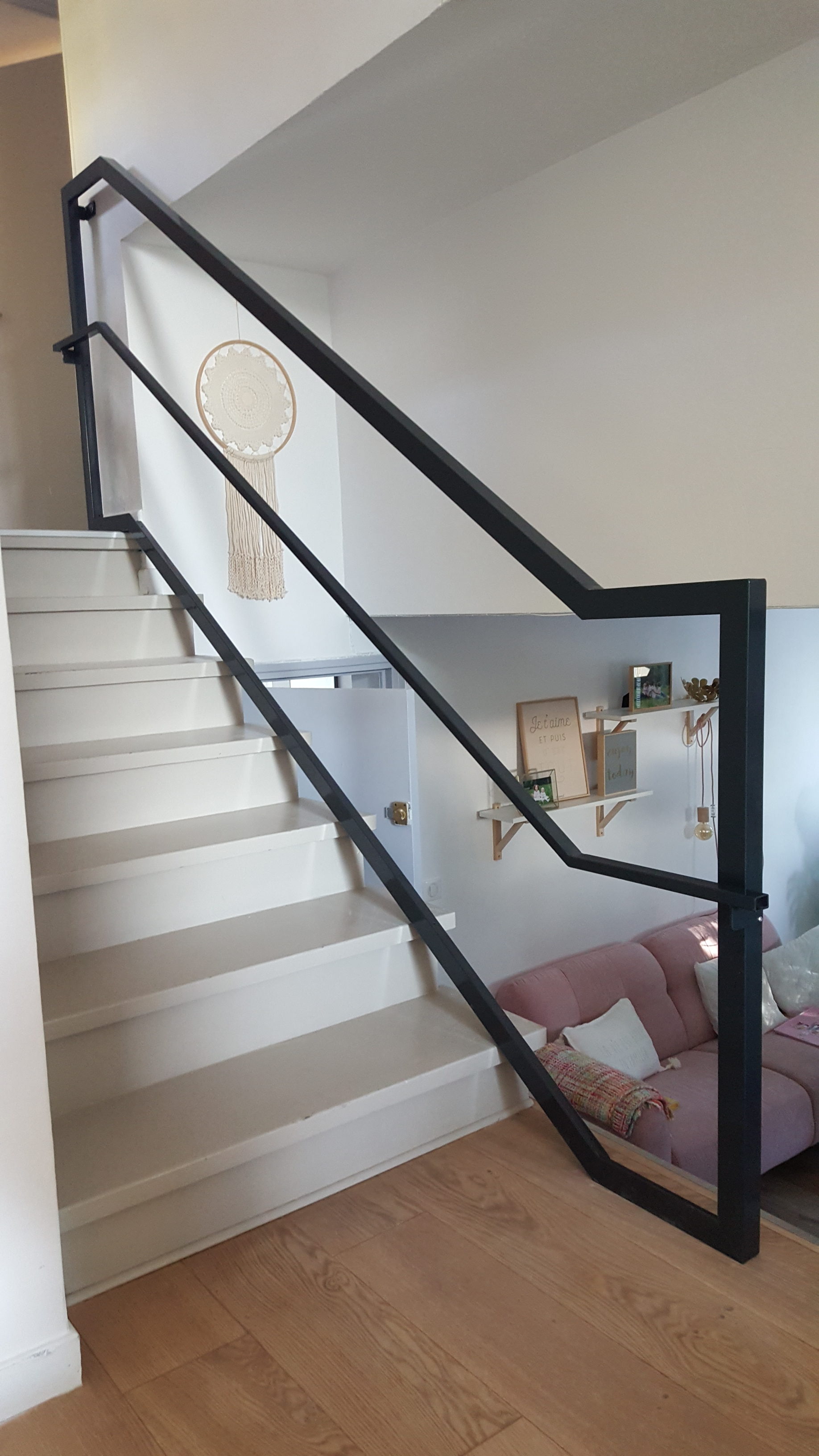 Le challenge était de rendre cette rampe d’escalier la plus moderne possible afin de l’harmoniser à la décoration intérieure.