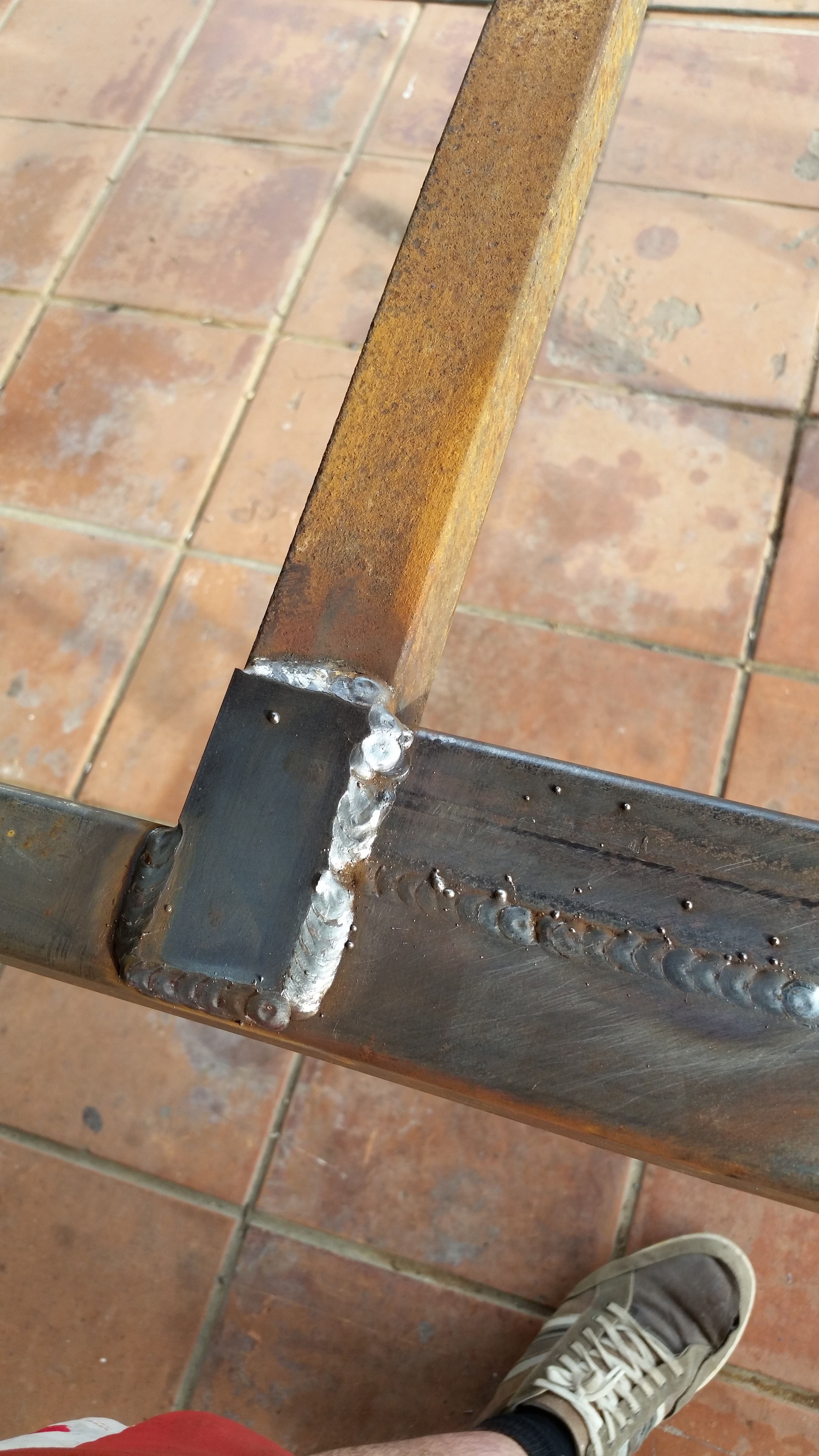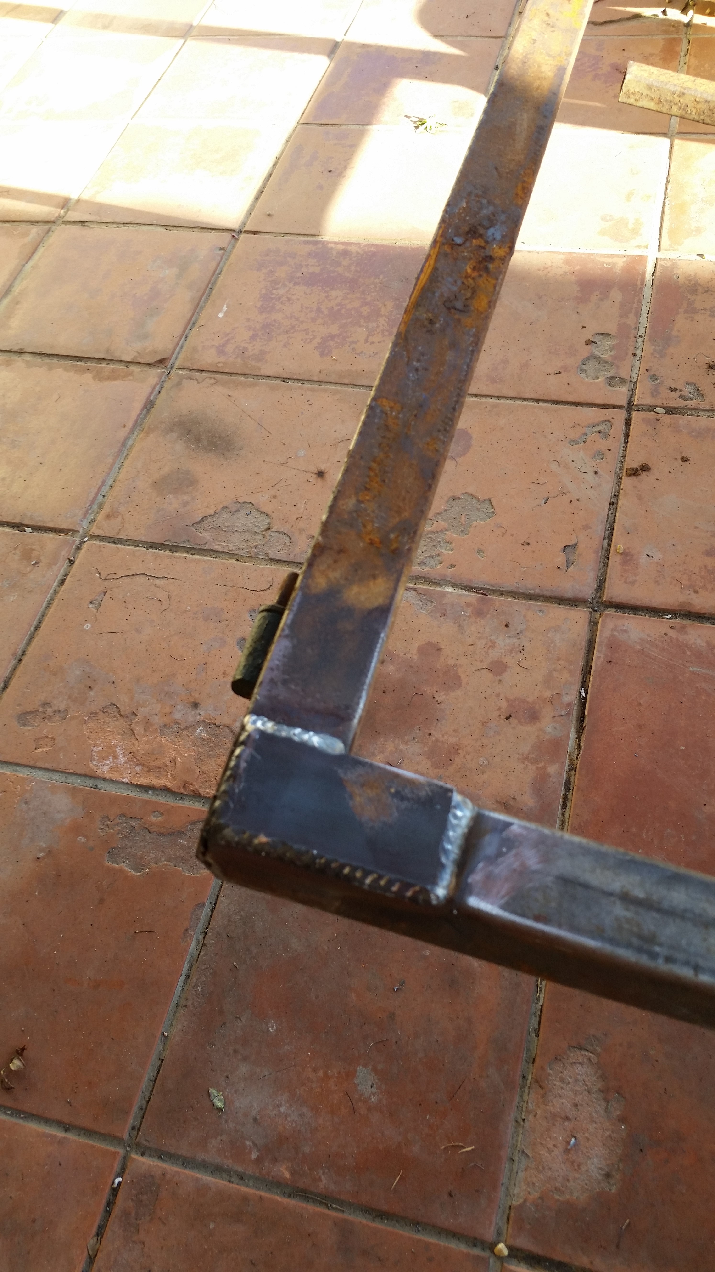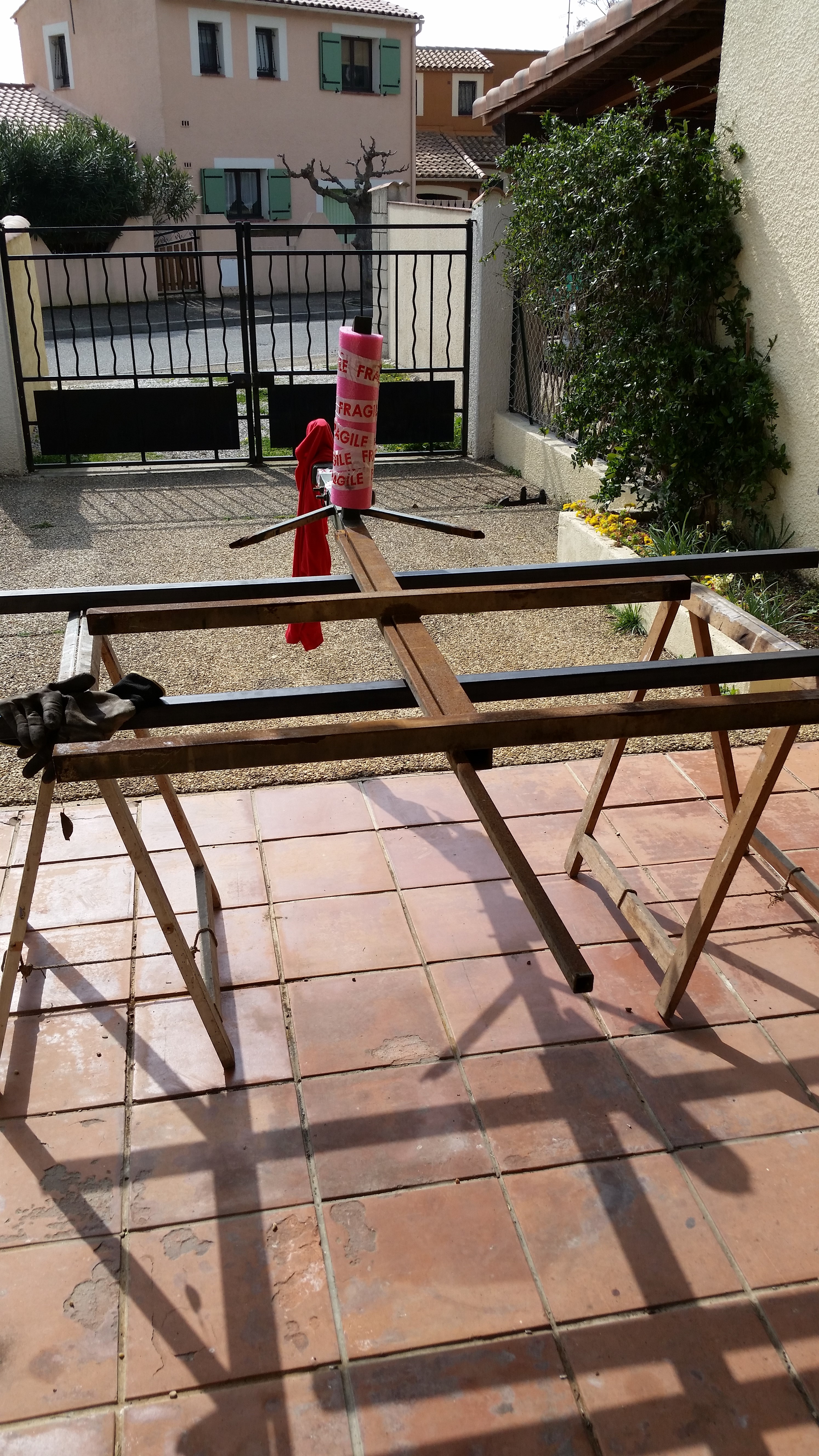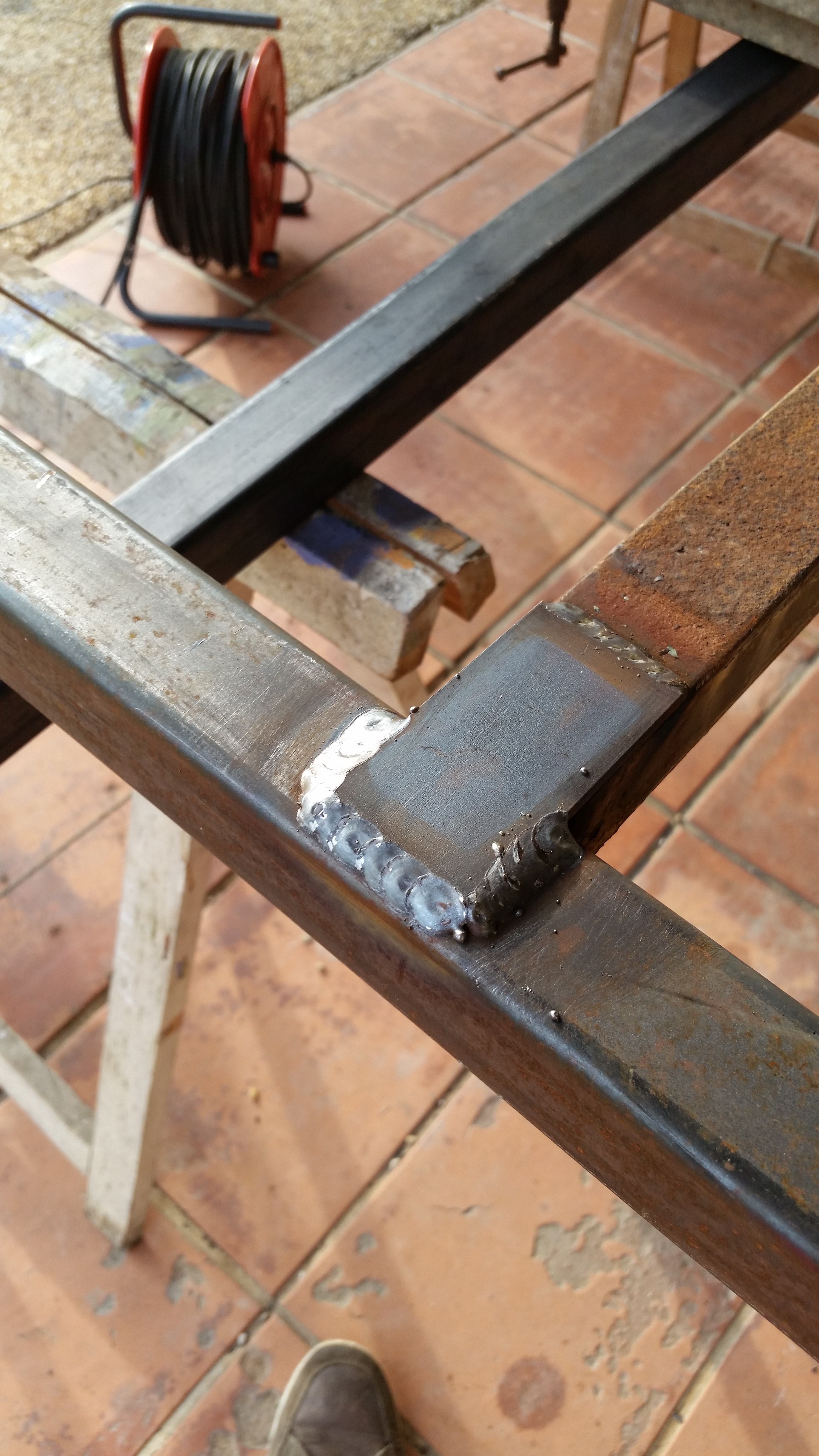 Restauration intégrale d’une vieille remorque plateau. Armature en acier soudée.